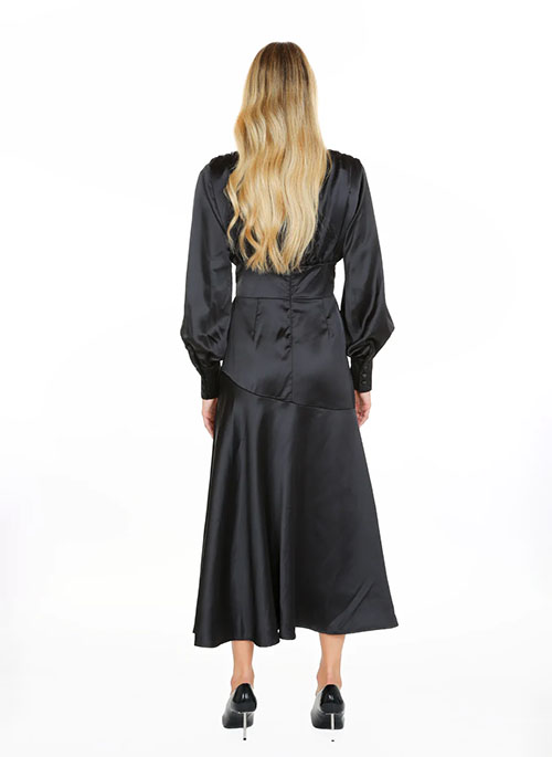 - Asymmetrical tiered skirt line