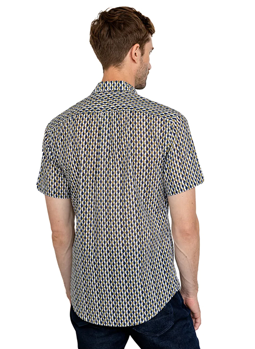 This vacation shirt features a brushstroke print in olive and navy. Keep cool on the go in this premium organic extra soft cotton fabric.