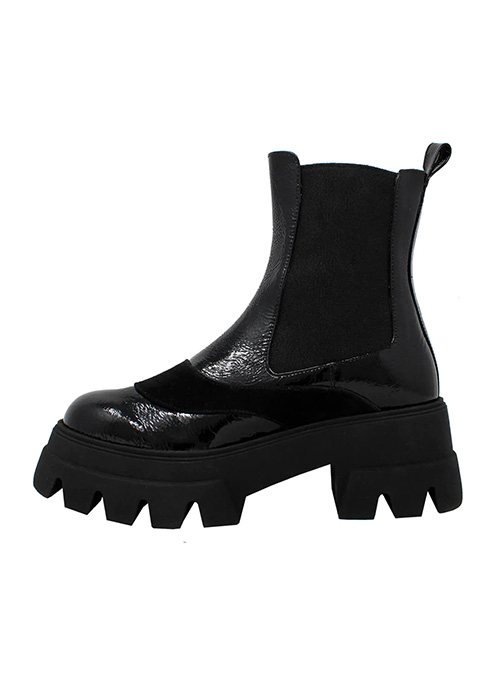 A chelsea boot on a lightweight, comfortable, and durable oversized rubber sole. Roberta is style and comfort. Decorated with a contrasting leather detail on the front.