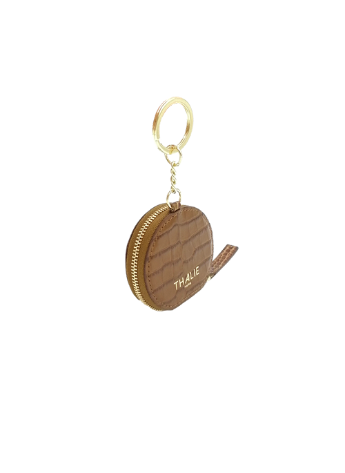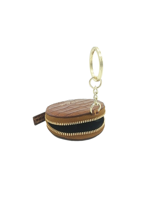 • Unisex key chain with round coin purse with gold zipper and a leather puller