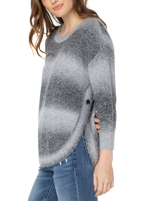 This rounded hem sweater is the perfect addition to your wardrobe! Featuring side slits and side button detailing that makes for an amazing statement piece and a flattering silhouette. Pair with denim and your favorite pair of boots for the perfect outfit!