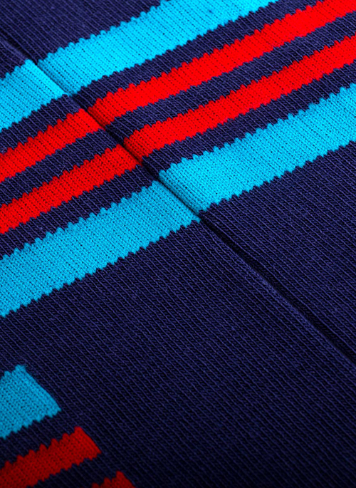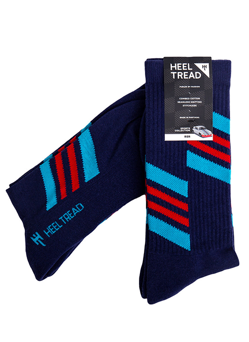 Our Sports collection has vertical ridges on the leg for added stretch and comfort. The piquet strip across the bridge of the foot makes sure the socks stay snuggly in place even during heavy activity. An all-around thicker cotton sock for those who like to feel as they're walking on a cloud. Socks Inspired by RSR.