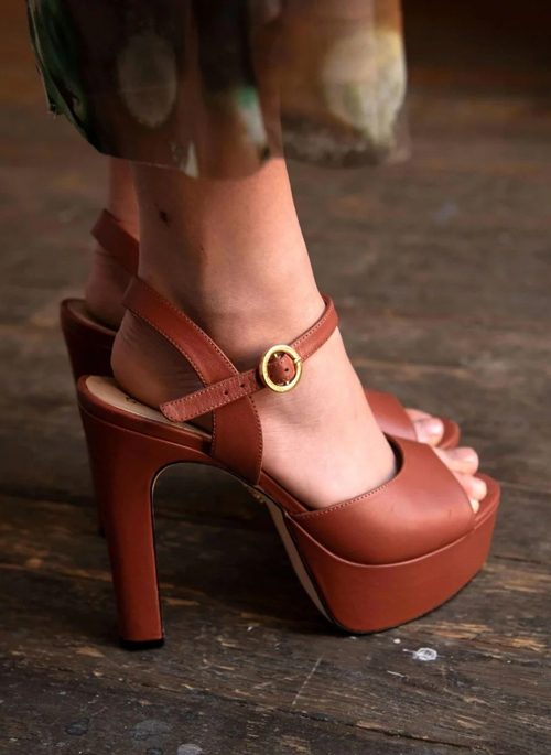 Our famous Sabrina platform is part of our permanent collection for its timelessness, modernity and comfort. It sits perfectly on the instep, while a heel strap with hardware functionality allows for an ideal fit. Created in the softest and finest leathers, in a range of colors that go from matte and neutral, to more edgy metallic leathers. Sabrina is the platform that you will want to use for everything, both your casual looks and your more formal looks.