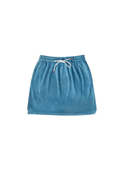 - Elasticated waist belt with navy and white striped cotton cord, chrome metal end cap finish, to tie