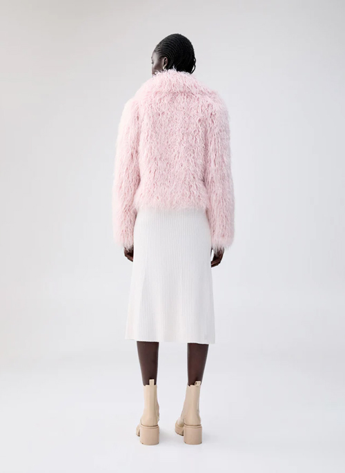 The saint tropez jacket is a faux fur jacket with a dramatic collar and lush exterior. Designed with a cropped bodice and twin front pockets, this warm style works effortlessly over a dress or pants for a high impact styling moment.