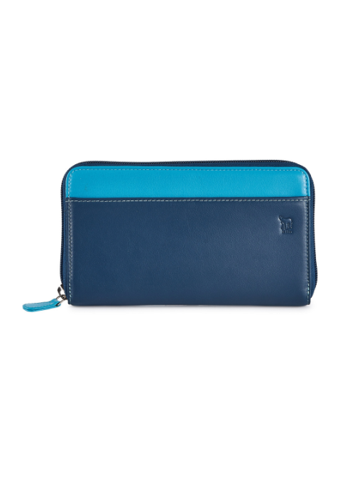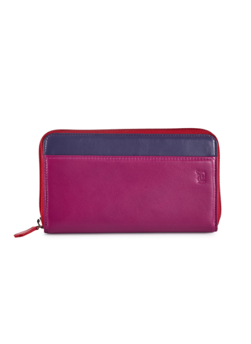 This spacious purse unzips to reveal double-sided card organization with a central zipped section for loose change.Zip around wallet for women made in soft genuine calfskin leather multicolour.