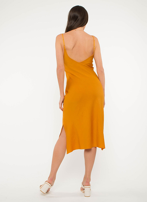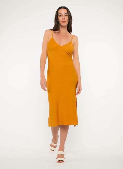 The best fitting slip dress you will ever own. Hugs all the right places. Satin crepe has a beautiful weight to accentuate the curves. Adjustable spaghetti straps and side slit make it the perfect dress with tennis shoes or heels.