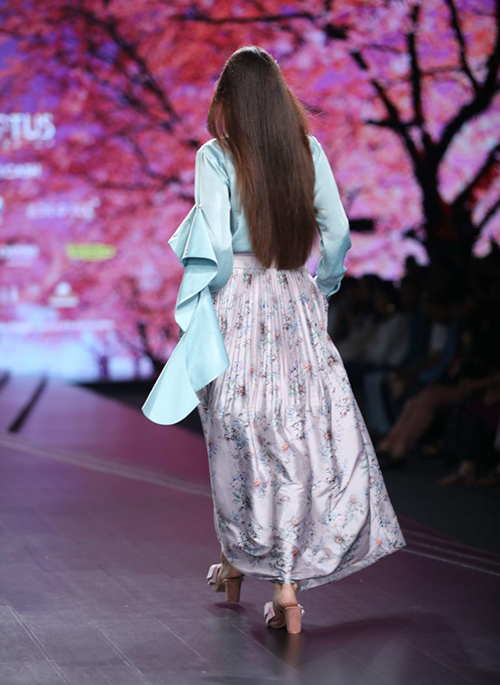 PIGEON BLUE CREPE SATIN RUFFLED SHIRT