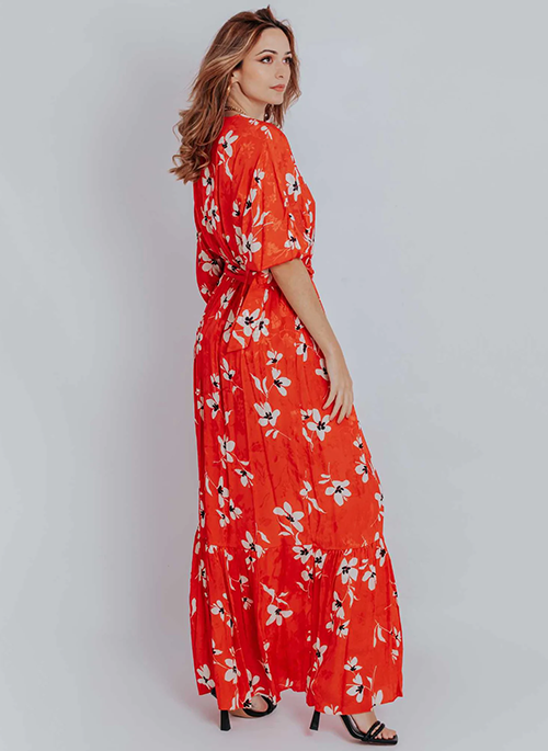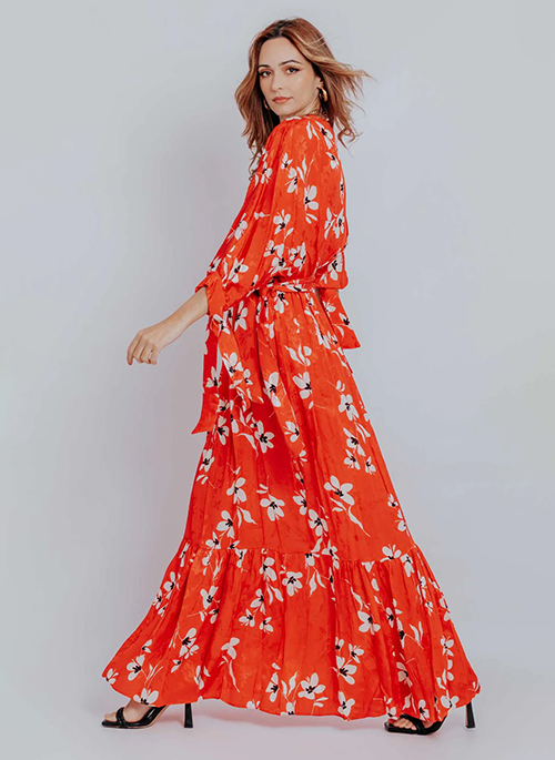Enchant in the Scarlett Floral Print Maxi Dress to make your beach, holiday, and event truly elegant and sophisticated. The Floral Print design dazzles with a V-Neck, Long Sleeves, and Tie Front. Accessorize your look with boho bags and sandals.