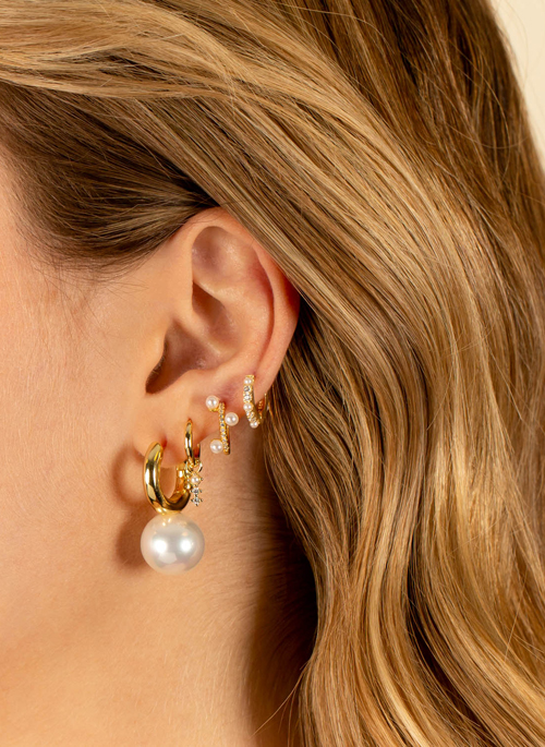 Rock a modern twist on timeless pearls with Adina's Pavé Pearl Scattered Huggie Earring, featuring a CZ-adorned huggie that's accented with a smattering of elegant pearls. Wear this gem as the centerpiece for a daytime statement huggie and stud stack.
