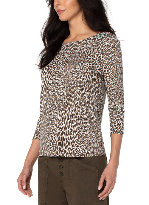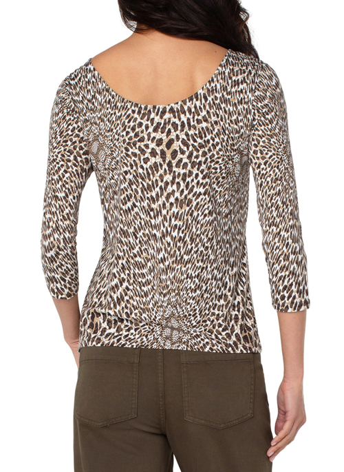 This scoop back top is anything but basic! Super comfortable and easy to layer. Wear this fierce print with a pair of black denim and heels and make a statement.