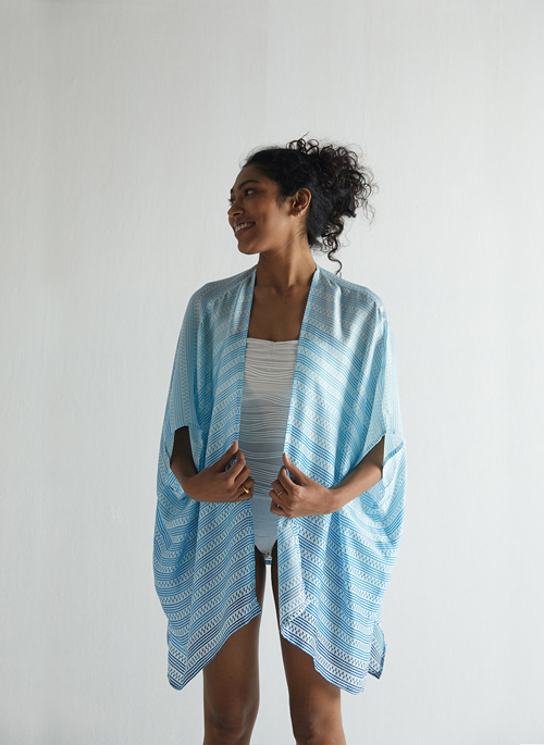 A chic, casual wrap that you can wear tied in a knot or leave open, depending on how you feel. Inspired by the movement of the ocean, this lightweight overlay is easy to style and super versatile.