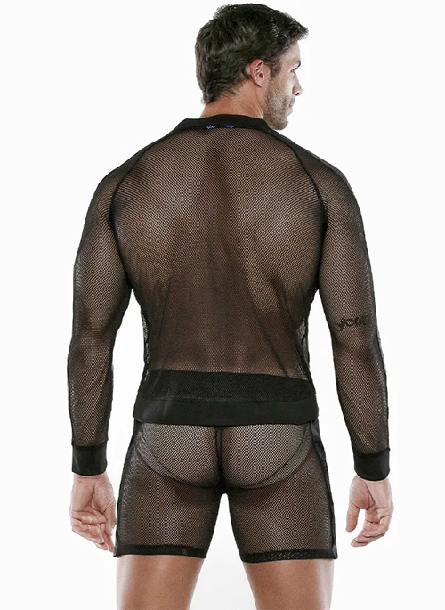 Sweatshirt jacket with front closure with zipper made of mesh. Deep front pockets, CODE 22 logo tape on the sleeves and HF logo on the chest. Ribbed trims on the sleeves and waist.