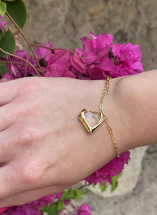 Self Love cable chain bracelet with arms wrapped around a heart-shaped transparent chequer cut rock crystal in the centre is to remind us to love ourselves before everyone else and be honest with ourselves: regardless of gender, sexuality, religion and ethnicity, an appreciation of one’s own worth. Our life keeps on revolving so as appearance does, so let’s embrace ourselves with each life changing moment. Regardless of what life is, self-love should be everyone’s priority.