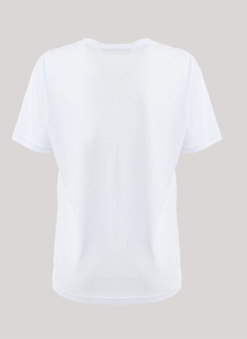 Personalized t-shirt in fine white cotton jersey with graphic design print. Embellished with contrasting fashion piping detail on shoulders and hips.