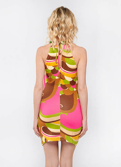 Enhance the femininity of your silhouette with this enveloping mini dress. With a seductive design, it is available in all the prints of the Onda series with a strong 70s appeal. The imaginative colored chain embellishes the neckline of this short dress. Crafted in comfortable jersey, it's the perfect party dress that's the trendiest of the season.