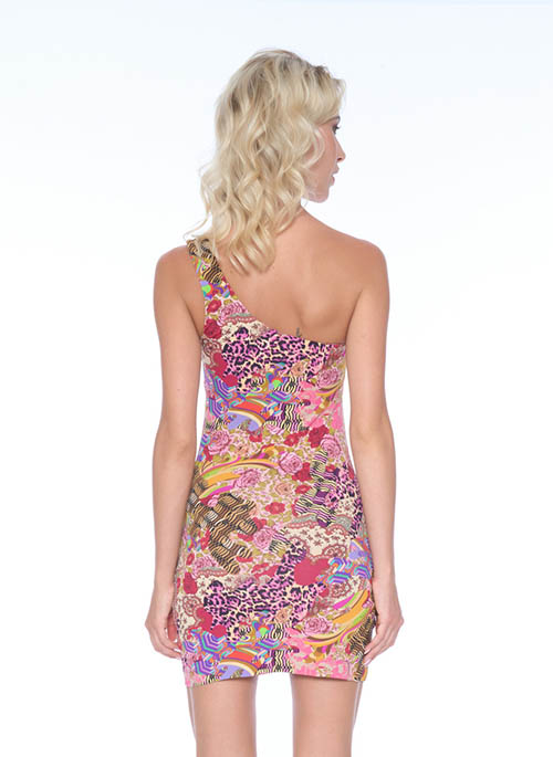 Give grit and color to your summer days with a glamorous look with a strong personality. To flatter your silhouette, choose this slim-fit one-shoulder mini dress that flatters the silhouette. Wrapping design and single shoulder strap will give further femininity to this short dress. Made in a fun print that mixes all the variants of the collection, it is the perfect choice to create an outfit full of style.