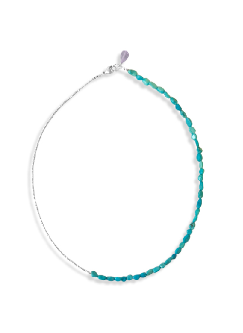 A single strand of tiny sterling silver beads, with a contrasting section of tiny Turquoise beads. This necklace is perfect for stacking with other necklaces across all of our collections.