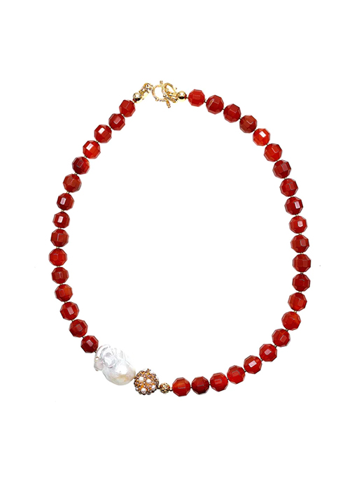 This handmade necklace is made of red coral with baroque pearl with Japan golden brass findings. It's timeless and unique which can be worn from day to night. Featuring every baroque pearl is unique. Also, pair with Farra earrings and bracelet to complete your look. It is a very nice gift for birthday, anniversaries or festivals.