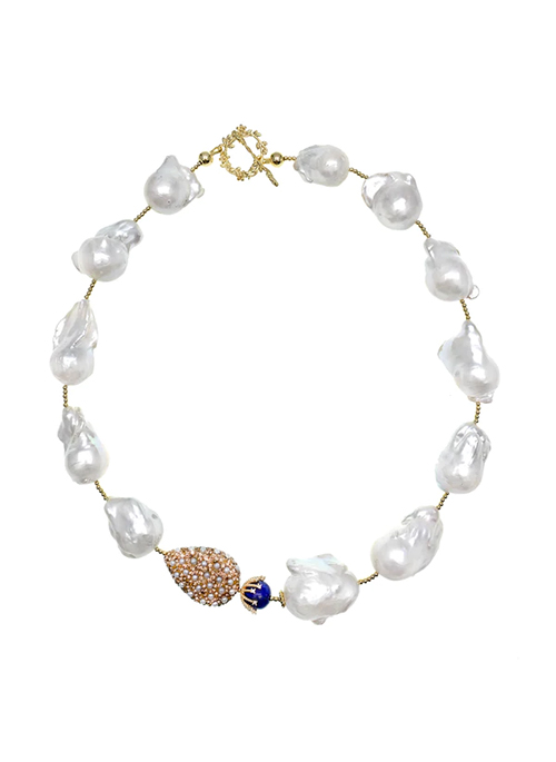 This handmade necklace is made of beautiful baroque with rhinestones and lapis with Japan golden plated brass findings. It's timeless and elegant which can be worn with dress, knitwear or blouse meeting friends looks stunning! Also, this is a very nice gift for birthday, anniversaries or festivals. It will be contained in a nice jewelry box with well packed.