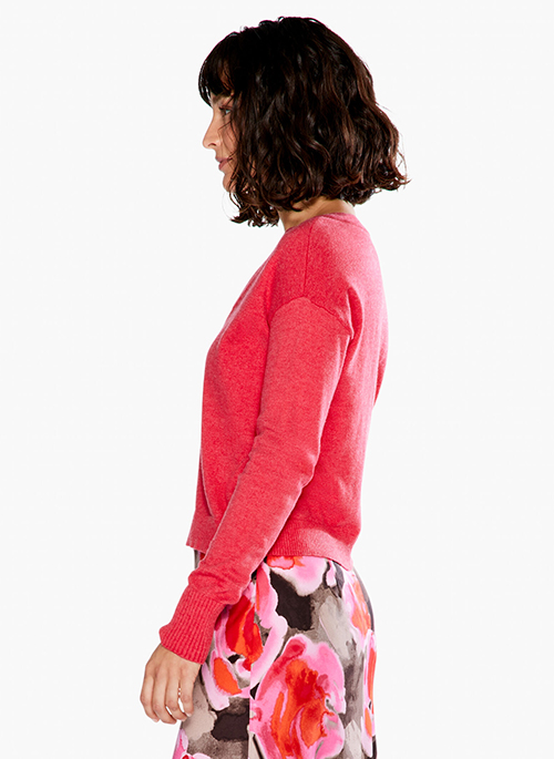 Add a bold block of color to your next look with the Shorty V, the perfect sweater for layering on top of dresses, tees, or button-downs. The banded V-neck adds a hit of flair, and the dropped sleeve detail and modern, easy fit silhouette means you've got options on how to style it. Not into a layered look? It's also light enough to wear as a top. Designed to sit just at the hip. Mindfully Made from fully fashioned knitwear.Details: