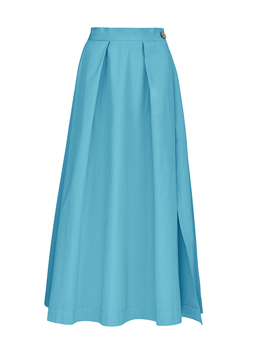 The midi-length skirt cut from Supima cotton. It features pleats on the front and back, side splits for extra movement, and a zip fastening on the side.