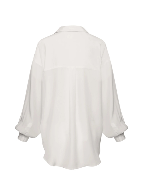 Silk button up, collared, long-sleeve blouse with an oversized sleeve and body. This top drapes simply gorgeously and pairs well with a Coco Silk Cami peeking out on the neckline, whether it is the same shade or not. The cuffs can be pulled up the arm to variate the bouffant in the sleeves. Try this shirt tucked, loose, and tied in front.