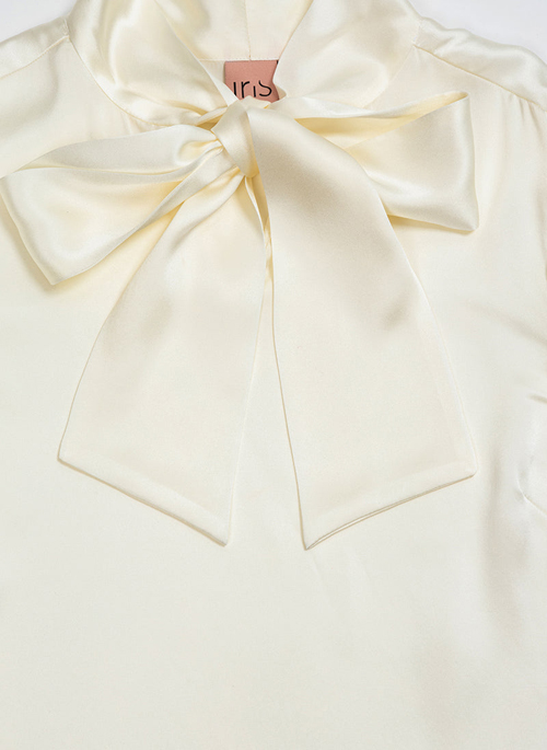 Elegant shirt made from silk. It has long sleeves with button cuffs, loose silhouette and a beautiful pussy bow on the neck.