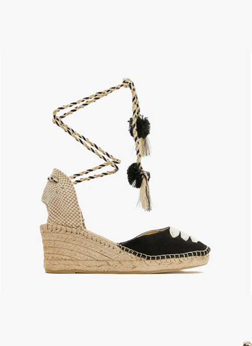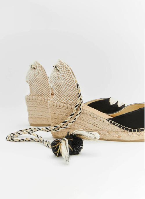 - The pom pom detail on the fastening loop is a real delight. We are in love with this model. Its 6 cm wedge will give you a plus that always comes in handy to stylize your summer look.