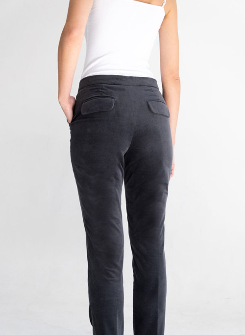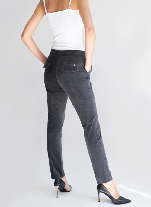 Skinny trousers with side pockets in soft charcoal gray cotton velvet with a slight stretch for an ideal fit.