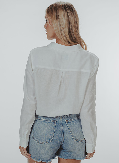 This shirt is constructed from a slub fabric giving it a rugged, durable, yet lightweight feel. Oversized through the body and tapered through the sleeve, this is the ultimate boyfriend shirt.