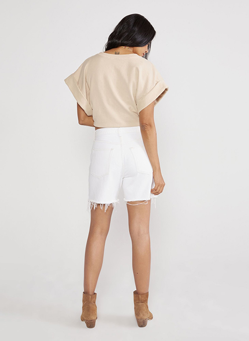 A comfortable fit with a classic rise that sits comfortably below the waist, the Skylar short is finished in a bleach-free white wash and a chewed hem.