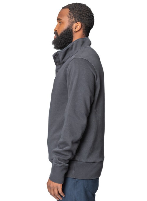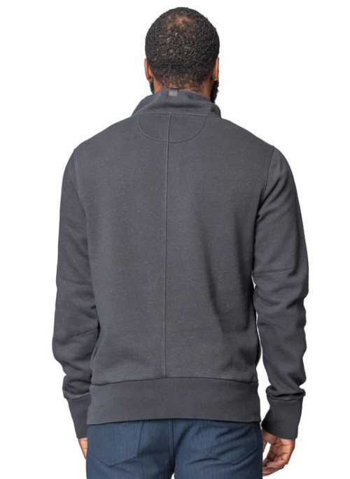 Our fleece mock is made of a super soft micro sanded fleece blend. This style it has a few hidden details like the side entry pocket and the combination snap/zipper closure at the neck.