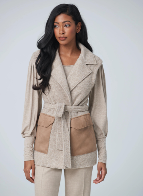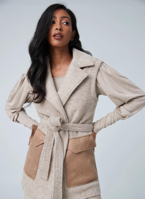 This sleeveless jacket with contrasting pockets is the perfect change from the classic jackets. Wear it with work pants and heels and your look will be complete.