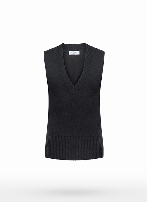 Sleeveless top designed to combine chic and comfort. On a simple shirt or under a jacket, this top will perfectly complete your outfits in a casual chic style. Made of pure Mongolian cashmere, it has a plunging V-neckline and wide armholes.