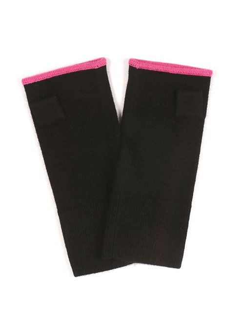 Fingerless mittens with stripped hem, contrast colour tipping and crystals.