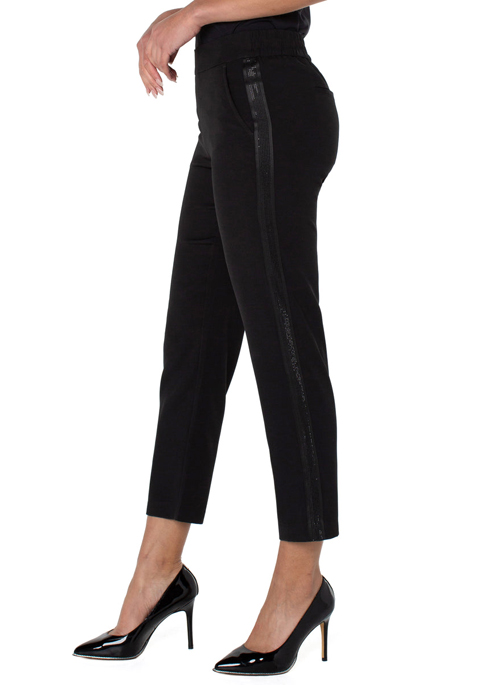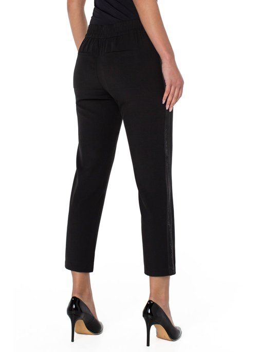 Shimmer in our new pull-on trouser with a beautiful embellished side stripe. Super comfortable, chic and easy to wear! This sophisticated pant has us swooning over all the possible ways you can wear it. Pair with a casual tee or a cute top, sandals or wedges, work or play... you get the hint. Make it a chic suit and pair it with the matching blazer!