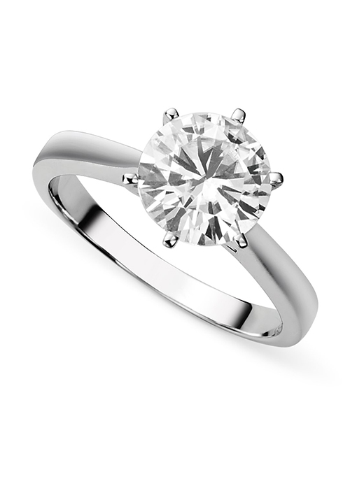 Promise her your sincere love and devotion with this Forever Brilliant® solitaire engagement ring. Gleaming brightly in 14K white gold, this elegant ring features a sparkling 8.0mm round cut stone displayed in secure six prong setting. Sure to win her heart, this lovely ring boasts 1.90ctw.