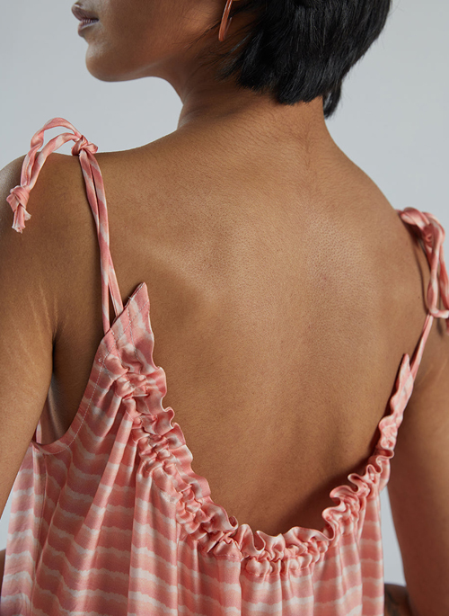 A bright, vibrant print that is perfect for days spent under the sun; our Raspberry Sorbet dresses features a low, sexy neckline with an adjustable drawstring for your comfort and is super easy to dress up for a festive night out.