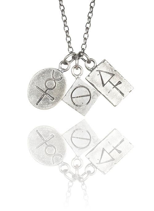- Antiqued sterling silver pendants of various sizes (1/4" - 3/4") on 20 or 24" chain