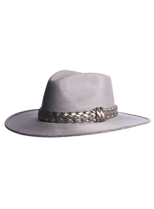 The crown of the Space Cowboy hat is stiffened and shaped into a clean and ridged design which comes with braided silver trim.