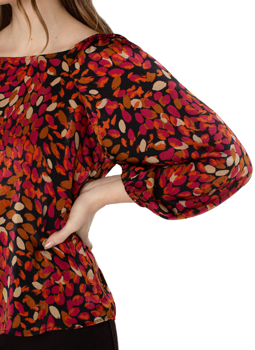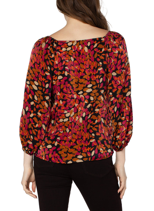 This 3/4 puff sleeve woven top features a square neck for a truly flattering fit. Autumn colors and feminine details make this top a must have for your wardrobe!