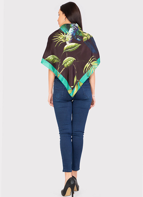 A classic silk square scarf with a grand prismatic print inspired by Maneesha's travels.