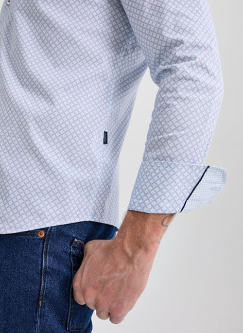 Our Blue Square Long Sleeve Shirt is made with cotton - an ideal fiber for the summer with natural breathability and moisture wicking. For extra comfort and ease of movement, we added stretch to these bases then silicone washed them for a super soft feel. All patterns are carefully designed in-house.