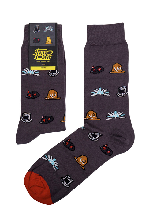 Music and weird hats come together like wet on water. Since original-rock-star Wolfgang Amadeus Mozart first started wearing a three-pointed hat over his wig to concerts, it's been a never-ending parade of eccentric headgear. that becomes A tribute to four such legends that have become synonyms of the artist who made them famous. Jamiroquai's crystal peacock (one of his many, many different hats), Guns n Roses Slash black top hat, AC/DC's Angus Young devil horns cap, and Pharrell's buffalo hat.