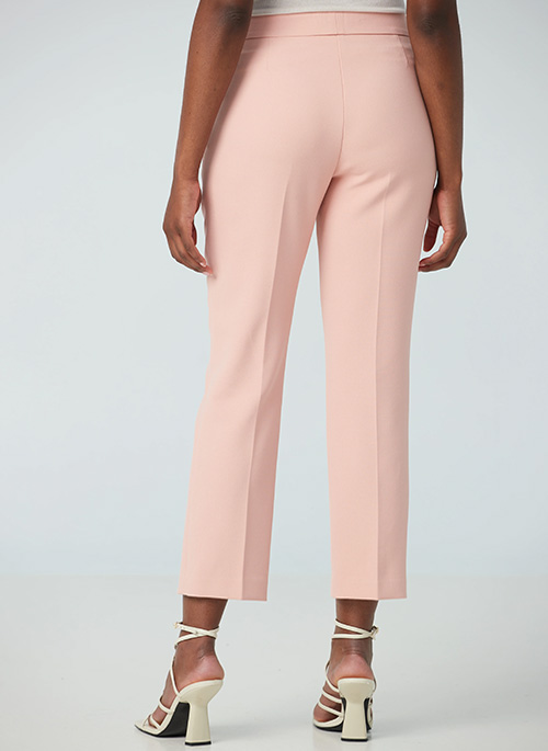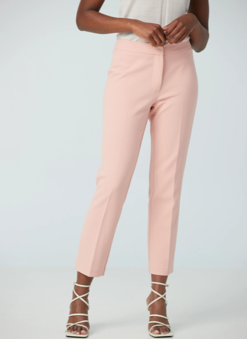 This fabric was imported from Italy. Our design team fell in love at first sight with the texture and appearance of the fabric. Mid-raise cigarette leg pant that goes with everything.