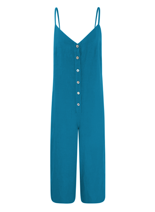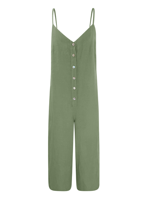 Jump into anything with our Linen Jumpsuit. In soft linen, this relaxed loose-fitting jumpsuit will keep you stylish and cool in the warmer months. This 3/4-length jumpsuits features a V-neckline, making it a feminine and flattering shape, Dress it up with heels for a night out or throw on some sandals for a weekend stroll in the sunshine and be off to conquer the world.