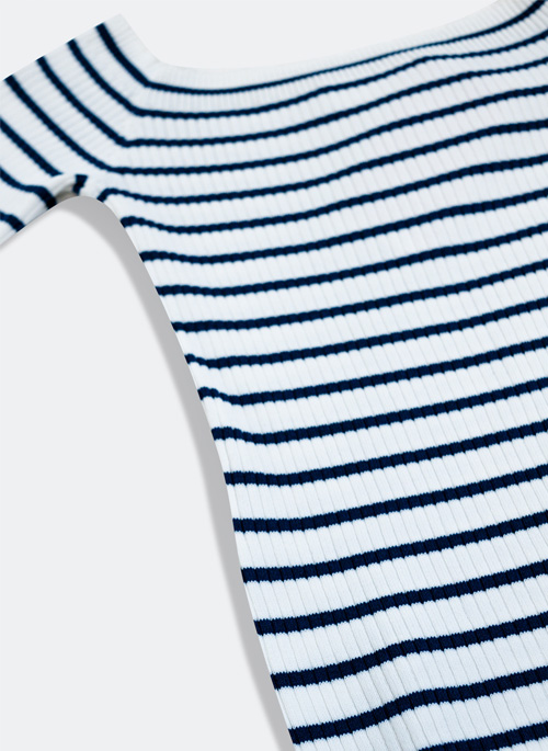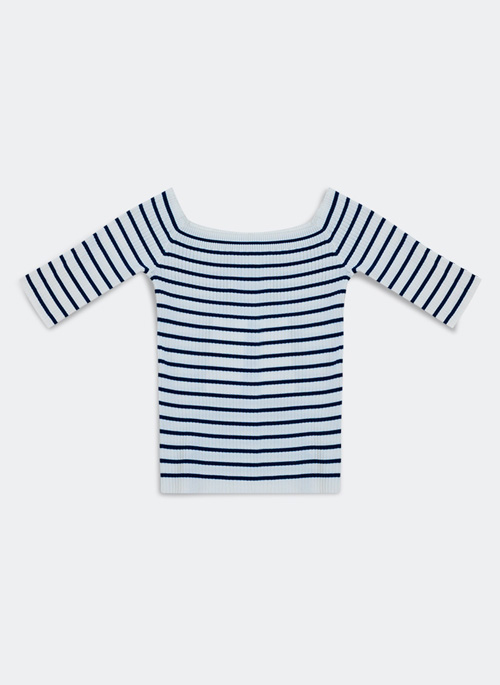NEW STRIPE BARDOT TOP IN NAVY