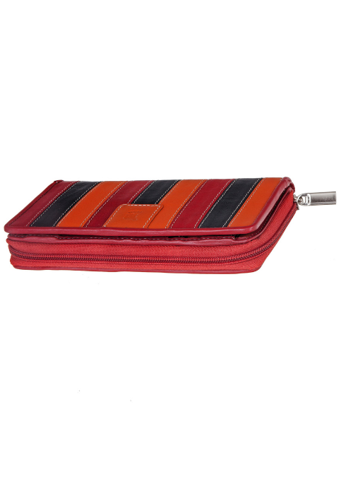 An evening wallet made of extremely soft leather. Consists of: 22 Credit card slots 1 Outer zip compartment with inner zip for notes / bills & coins 1 photo ID window h: 9 cm | w: 19 cm.
