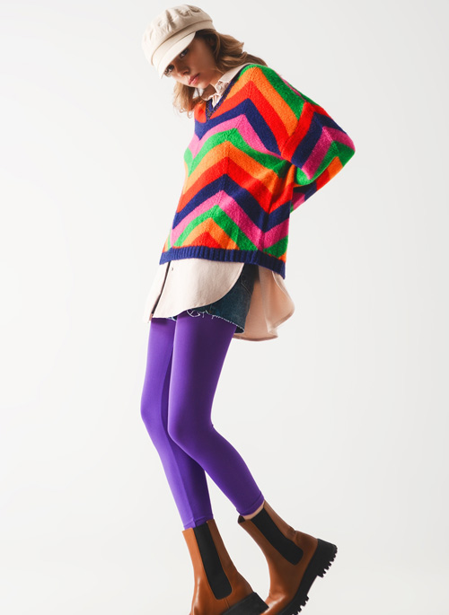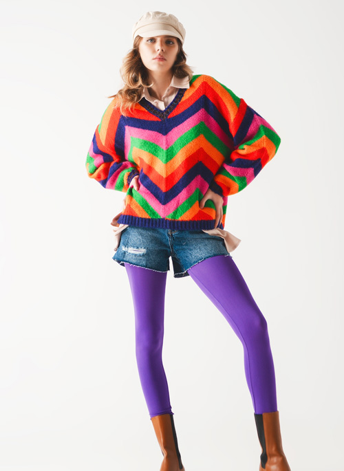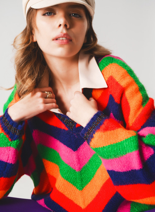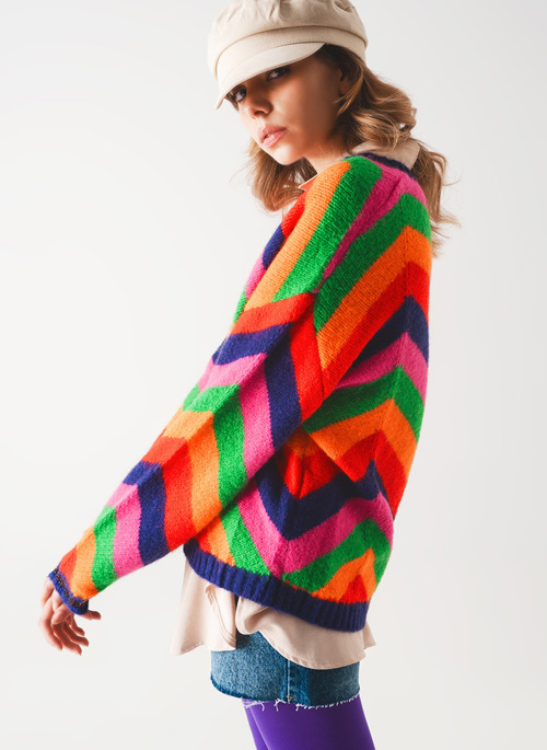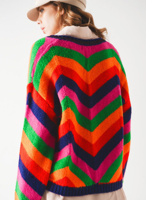 NEW STRIPED KNIT SWEATER IN MULTI Details: 47% Acrylic 20% Polyamide 15% Polyester. Model is wearing size U. Model is: 33-23-35 Height: 5'10''. Runs true to size. Relaxed Fit. Style Nº: 5279717.